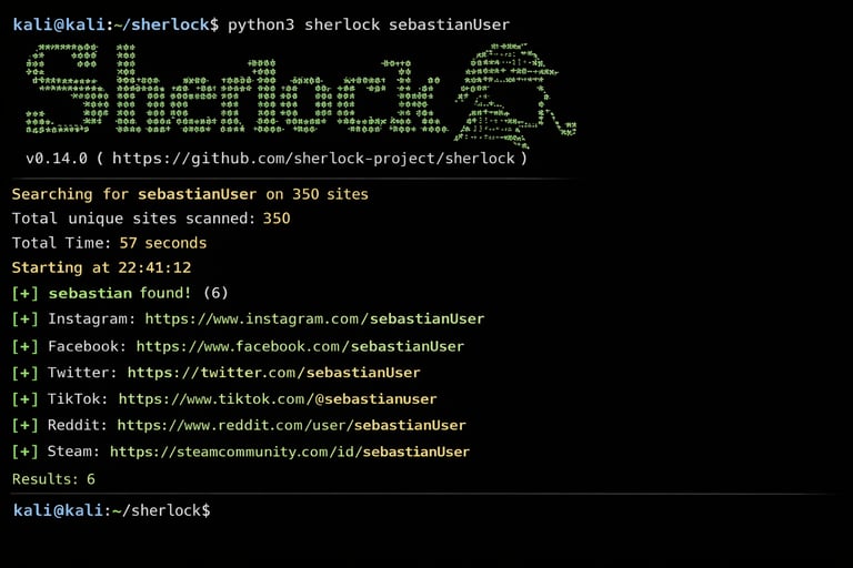 Sherlock permite buscar un mismo username en cientos de redes sociales y servicios online de forma automatizada. Es una herramienta especialmente útil en investigaciones de identidad digital, análisis de huella online y procesos de verificación.